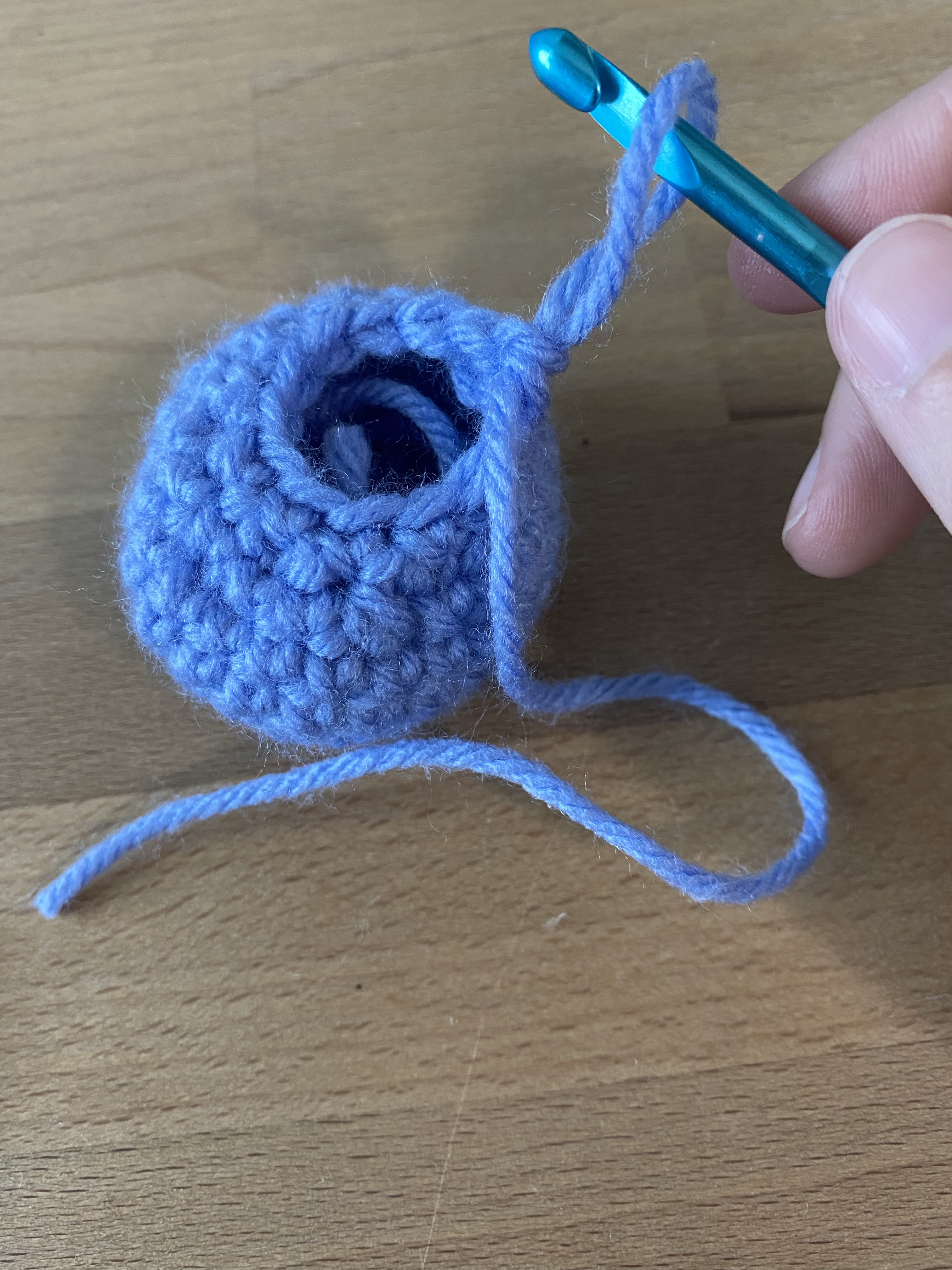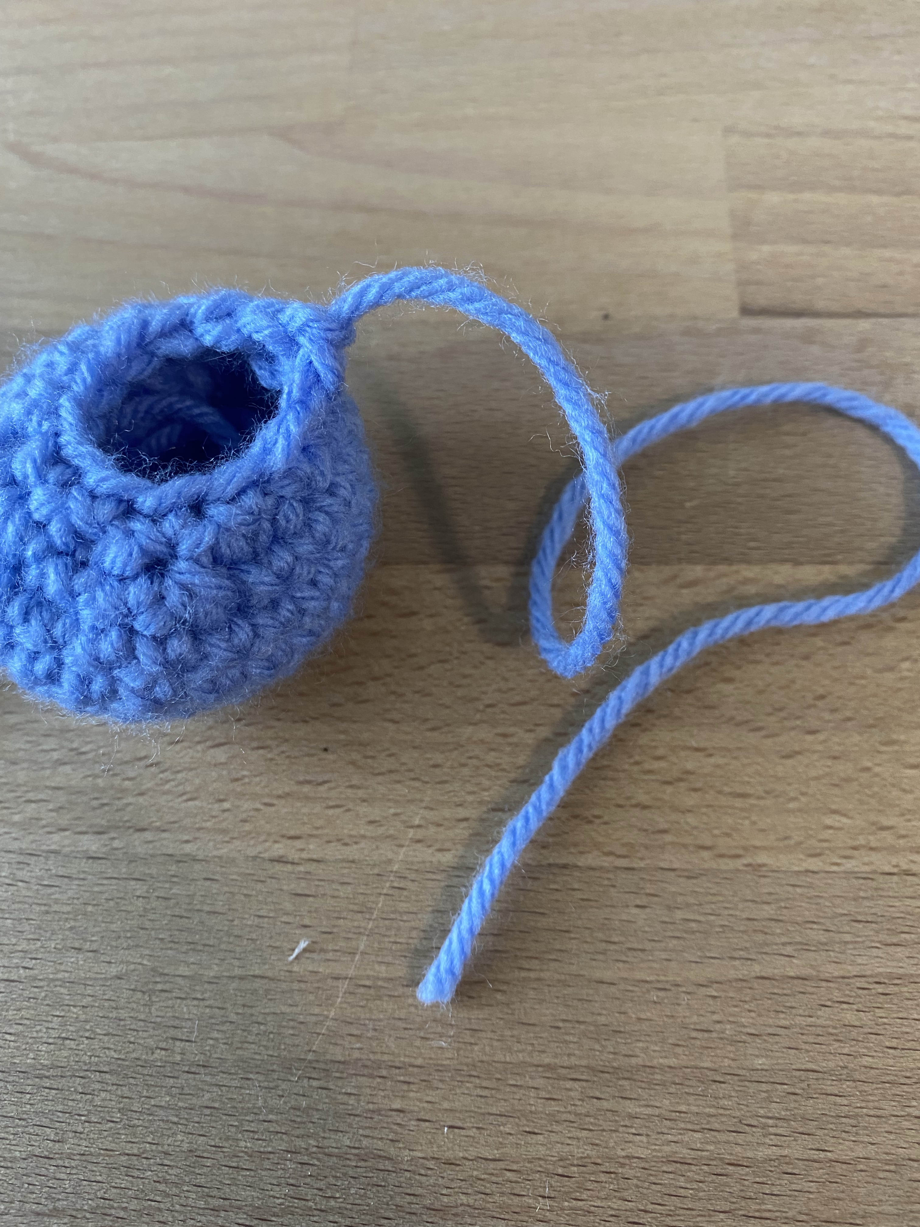 All you have to do is cut the yarn attached to the ball of yarn, leaving a few inches of yarn to weave in later. At this step, the loop is still around your hook. Pull your hook away from the piece and pull the end of the tail all the way through. Then, I tighten it a little bit with my fingers but that’s it! When you tug on your crochet piece, it will not come undone.