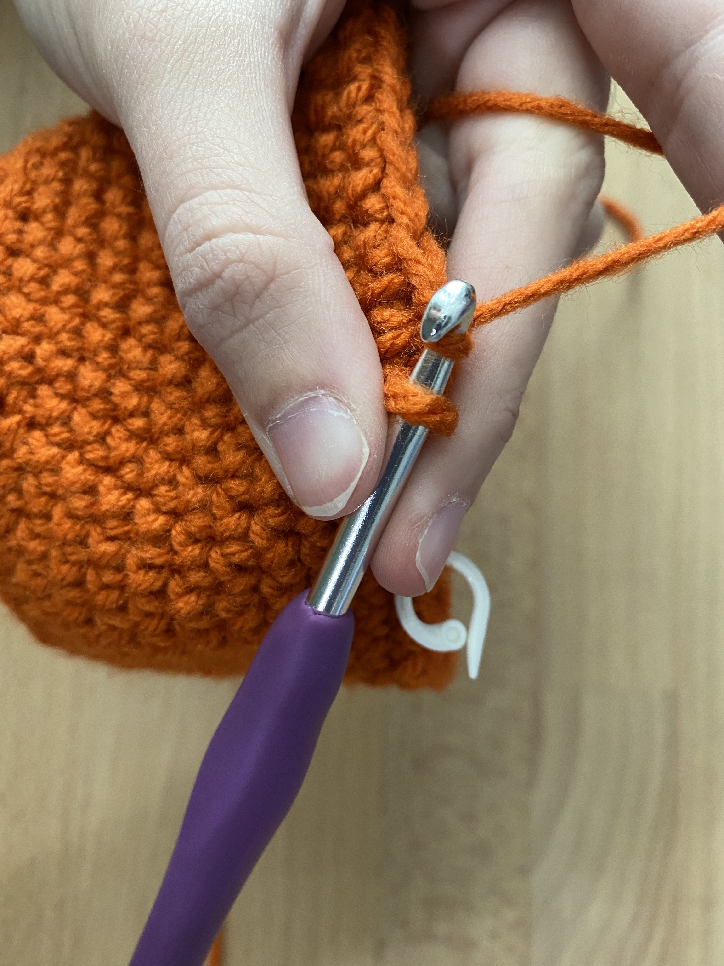 - Pull through both the stitch and the original loop on your hook (leaving 1 loop)