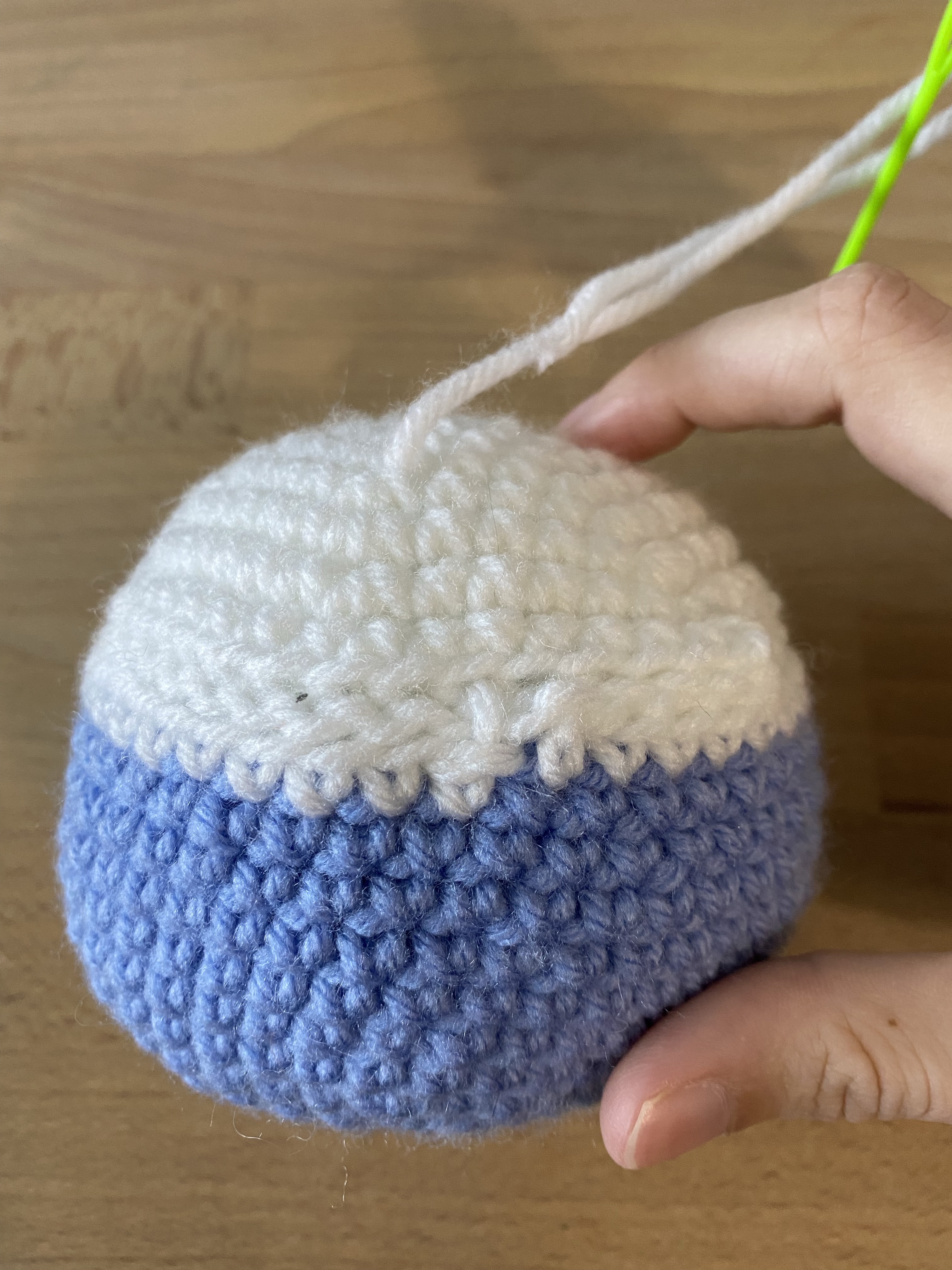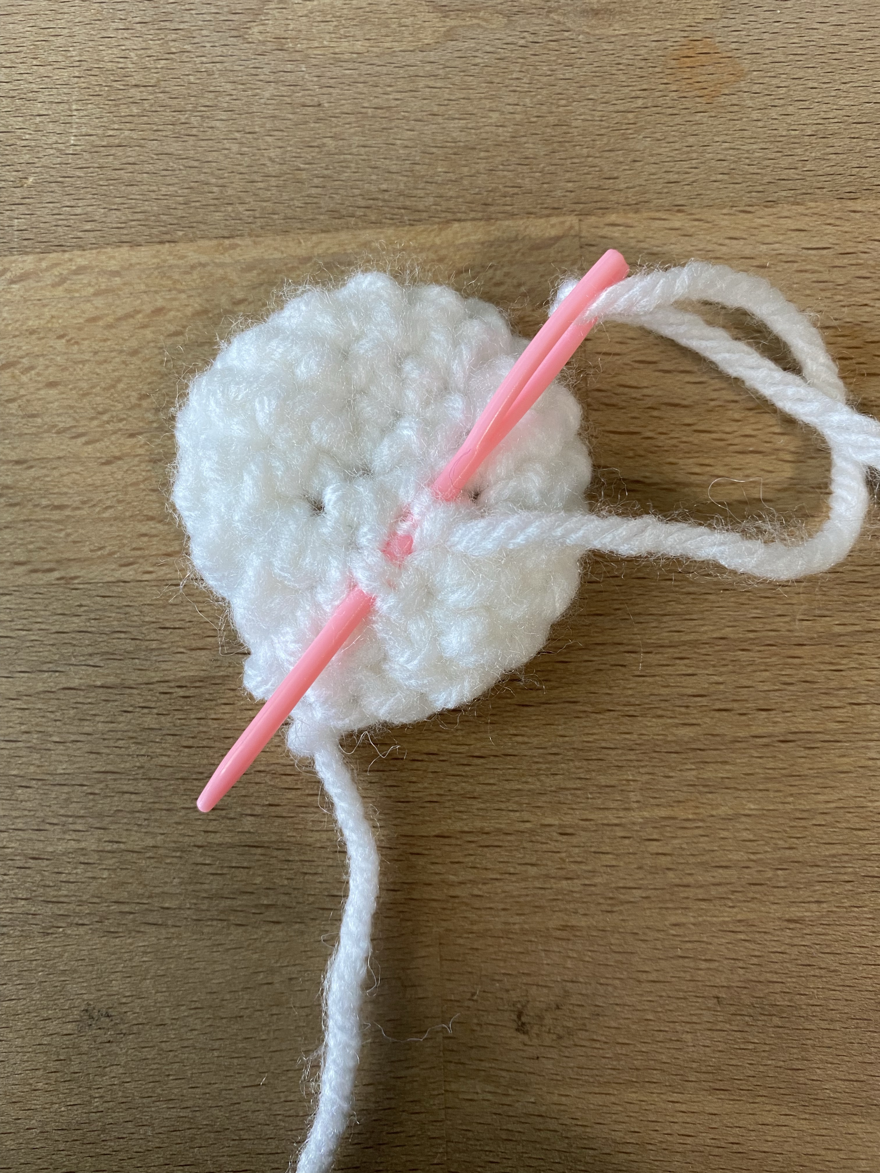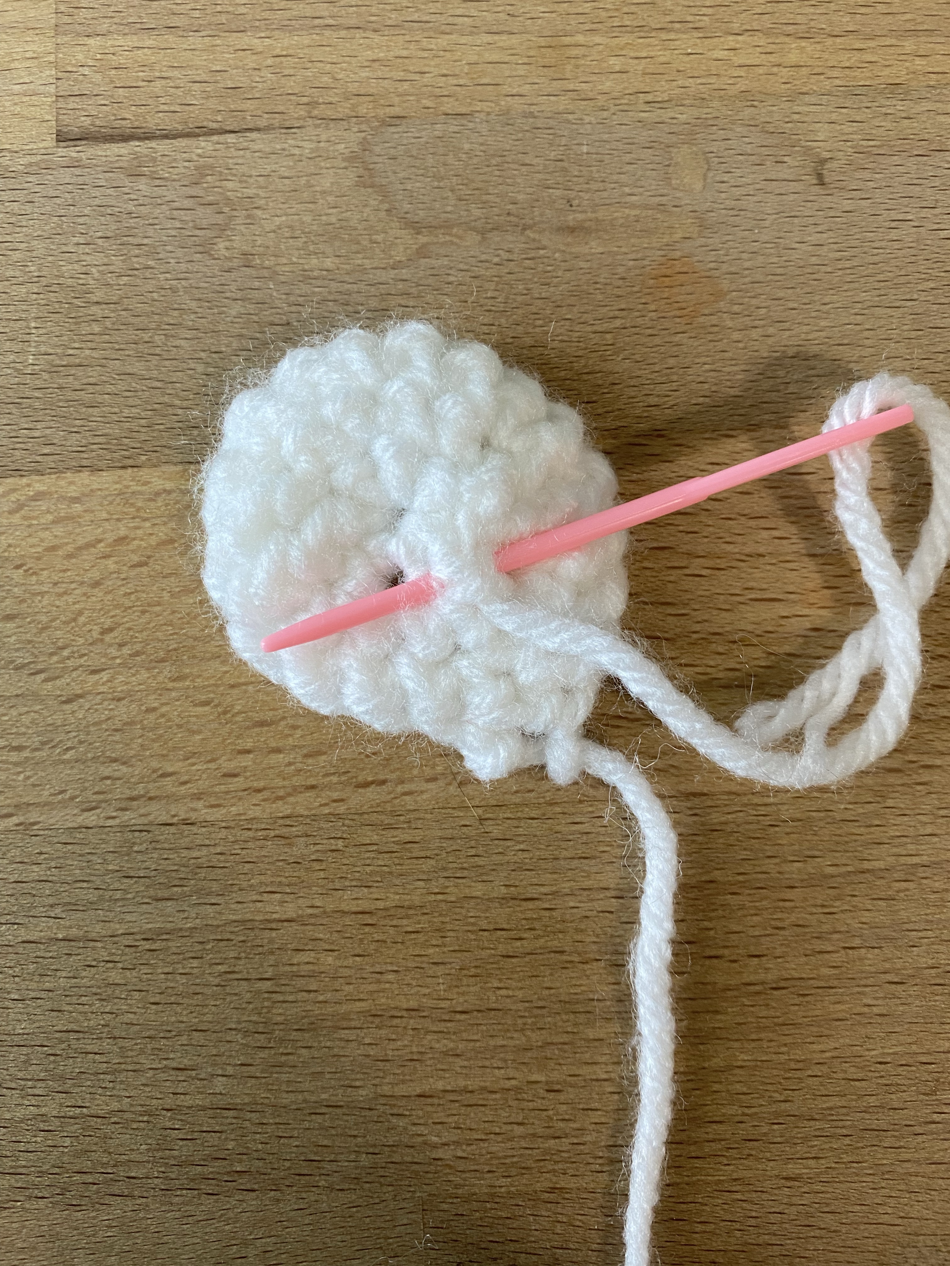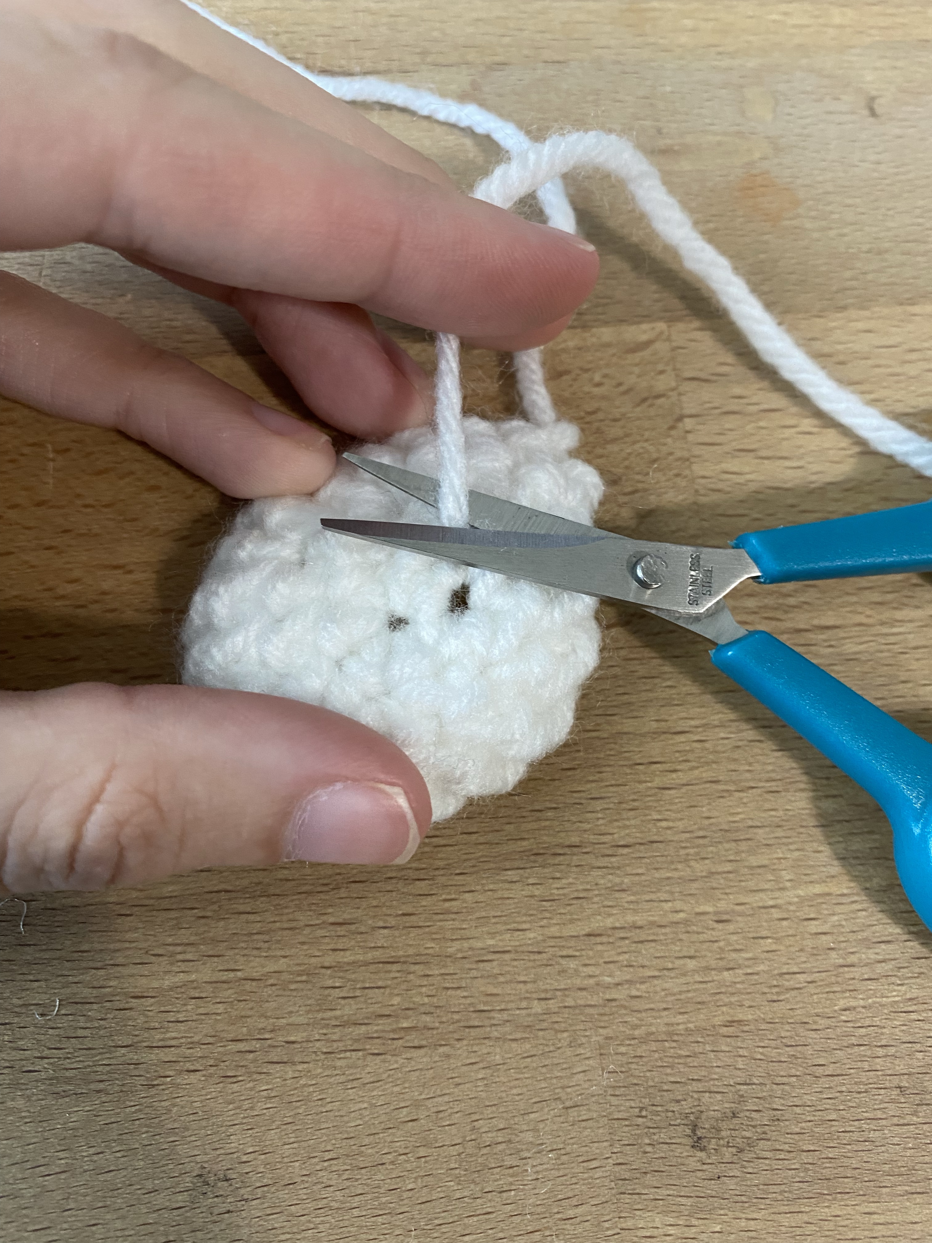 Hiding your tails in round crochet is a bit easier. Place your tail on your tapestry needle and stick it through and poke it out where it is the same color. Trim the tail and make sure it doesn’t stick out.